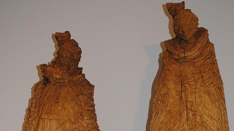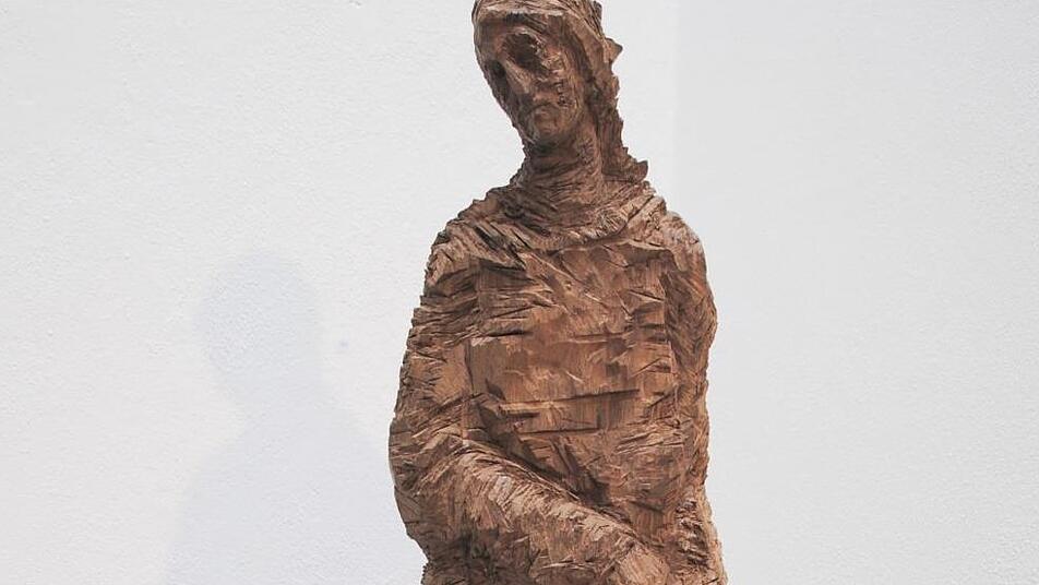 Utanapischtim ist ein Held aus dem sumerisch-babylonischen Flut-Mythos, dem Gilgamesch-Epos. Der Name bedeutet so viel wie "Ich habe mein Leben gefunden". Utanapischtim heißen zwei der Skulpturen, die der "Herrgottschnitzer" Stefan Schindler im Coburger Kunstverein ausstellt. Eine verharrt in der Position der christlichen Heiligen- und Madonnendarstellungen, in sich leicht gedreht, geneigter, in sich gekehrter Blick, die Hand in den Schoß gelegt.