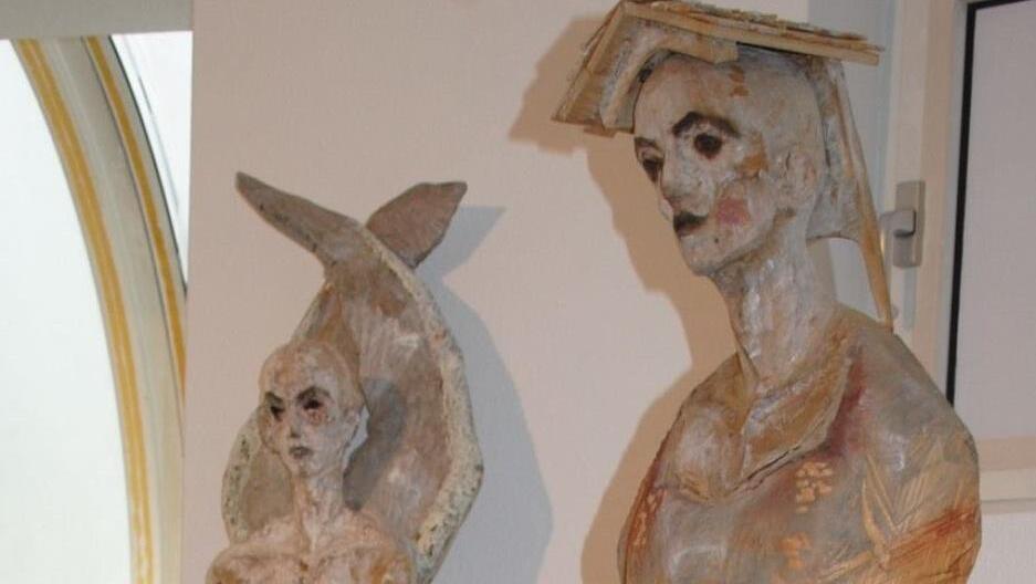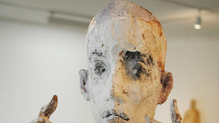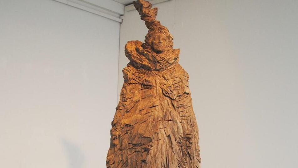 Schindlers Skulpturen vergegenwärtigen die christliche Tradition der Holzbildhauerei, bringen dabei aber auch eine neue, heutige Ästhetik. Etwa mit dem "Nomaden" oder dem "Hamael", deren kleine ausdrucksstarke Köpfe aus übergroßer, gefäßartiger Bekleidung ragen. Die ist über und über gekerbt, eingeschnitten, Rundungen werden durch immer dichtere Linien herausgewirkt. In seiner Vita berichtet der im Landkreis Ansbach Aufgewachsene - nichts. Von den Stationen seiner Ausbildung abgesehen. Er wird wohl ausdrücken wollen: Was gibt es angesichts dieser Gestalten noch zu sagen? Einer seiner Jesusfiguren heißt übrigens "Das Ende der Sicherheit".