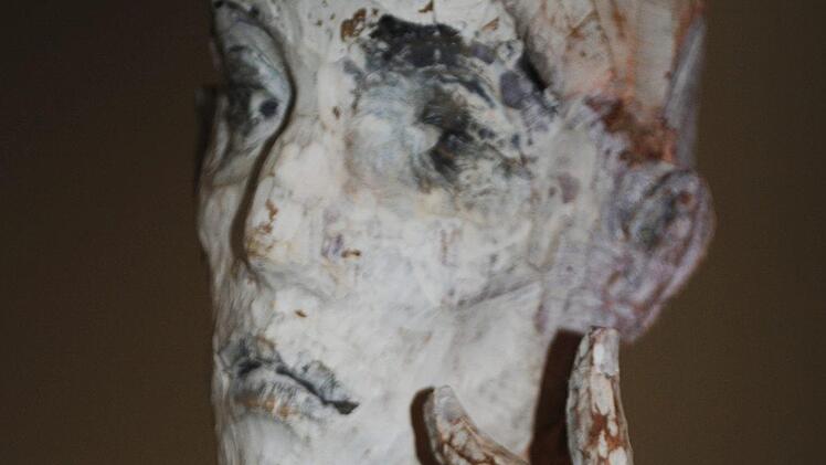 Mit dieser Debüt-Ausstellung holt der Coburger Kunstverein einen Bildhauer ins Licht der Öffentlichkeit, der aus geradezu mythischer Wucht wirkt, wie herausgehoben aus aller Zeit. Die Namen weisen in Vor- oder Über-Zeit; der Engelsname Hamael erscheint, die babylonische Göttin Tiamat. Es gibt einen erschreckenden "Engel", die Flügel hinter und über sich zusammengeschlagen, Spuren von Gold noch in seinem imaginären Gefieder. Ein "Seher" hat seine Hände erhoben, nicht wirklich mahnend, die Finger aber sind, obwohl durchaus filigran, von solch erschreckender Plastizität und lebendiger Körperlichkeit, dass er einen wahrlich ergreift, dass man meint, diese Finger auf den eigenen Wangen zu spüren.