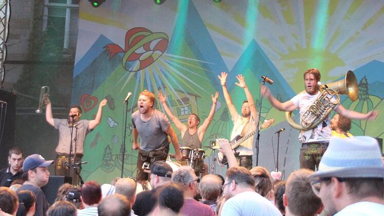 Was für ein Start in den Tambacher Sommer! LaBrassBanda brachte den Schlosshof zum unbändigen Feiern.
