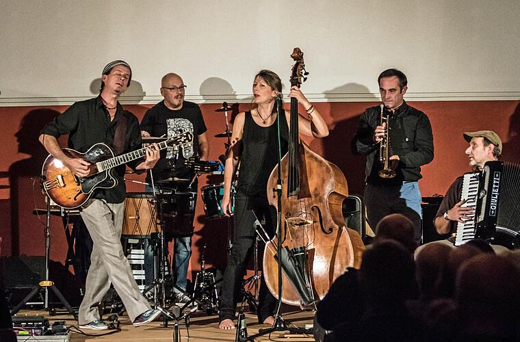 Dem Multi-Instrumentalisten-Quintett ist es vielmehr gelungen, aus der Vielfalt an stilistischen Einflüssen und Zutataten eine ganz eigene musikalische Sprache zu entwickeln. Das beweist auch ihr Auftritt zum Auftakt der neuen Saison bei "Cultur im Contakt". Drei Jahre nach ihrem ersten Gastspiel an gleicher Stelle hat das Ensemble diesmal das Programm seiner neuen CD-Einspielung "Aussegrasn" im Gepäck.
