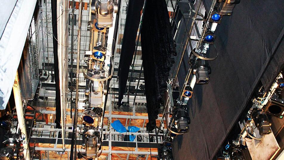 Getrocknet werden müssen auch die langen schwarzen Samtvorhänge, die die Bühne zur Seite hin begrenzen.