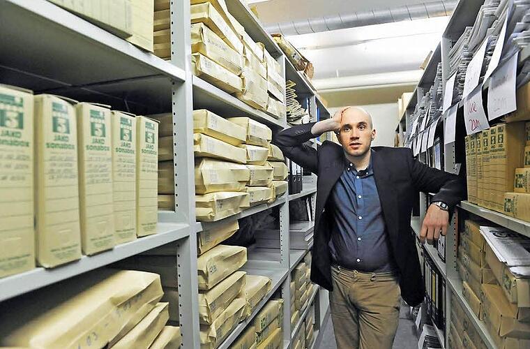 Thorsten Köhler zum Beispiel geht auf Spurensuche im Archiv des "Tageblatts", das bei diesem Foto-Shooting als Kulisse dient für das Archiv eines ganz und gar fiktiven Versicherungsunternehmens.