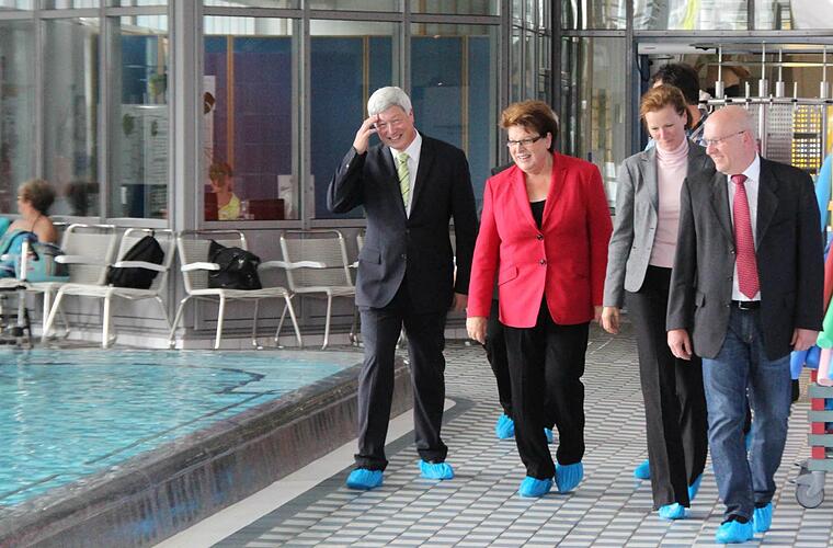 Landtagspräsidentin Barbara Stamm wäre am liebsten da geblieben, gestand sie: "Gerne" wäre sie ins Thermalwasser gegangen, leidet sie doch noch sichtlich an den Folgen einer Hüftoperation. Aber zum Vergnügen oder zur Reha war die CSU-Politikerin am Freitag nicht in die Bad Rodacher Therme Natur gekommen.