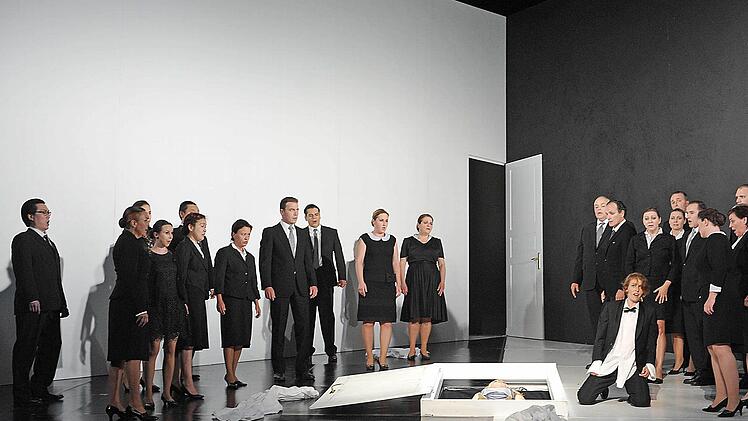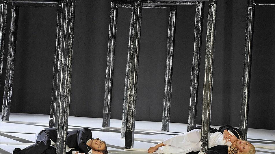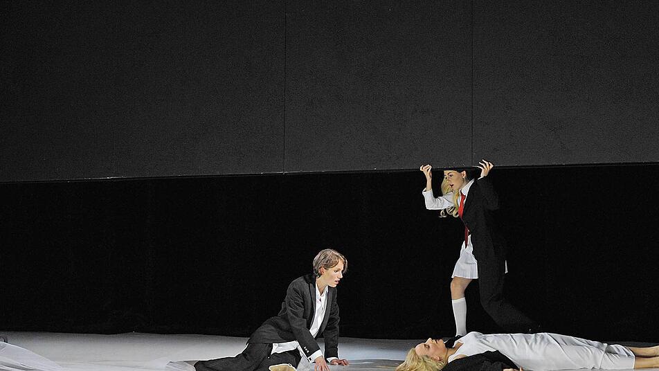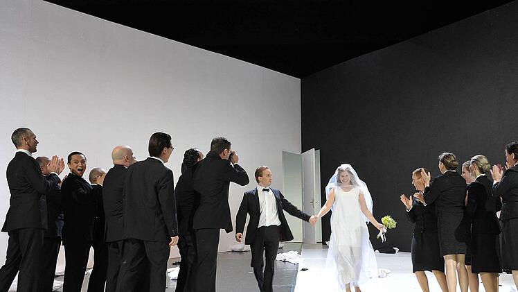 Ihre zweite Arbeit am Landestheater Coburg (nach "Madama Butterfly" vor gut einem Jahr) verzaubert gleichermaßen durch Schlichtheit der äußeren Mittel wie durch Intensität des Ausdrucks, durch präzise, einfühlsame Personenführung, durch Stimmigkeit im Detail wie in den großen Zusammenhängen. Schwarz-Weiß-Symbolik charakterisiert die Kostüme, Schwarz-Weiß-Symbolik prägt das Bühnenbild, das eine nach hinten ansteigende, spitz zulaufende Ebene zeigt, die in eine nach zwei Seiten zu öffnende Tür mündet.