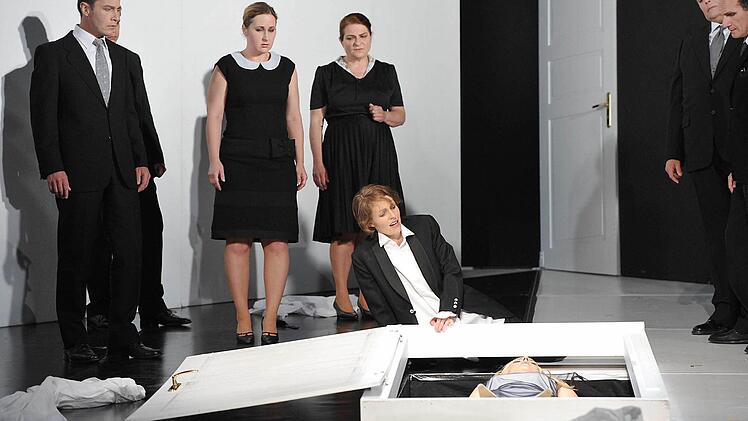 Faszinierende Inszenierung Türen, überall Türen auf der Bühne des Landestheaters - schwebende Türen, stehende Türen, liegende Türen, weiße Türen, schwarze Türen. Doch wohin führen sie? Zurück ins Leben, in himmlische Gefilde gar? Oder doch unwiderruflich in den Tod? Türen sind das beherrschende Element dieser Inszenierung, dieses Bühnenbildes. Türen als Symbol des Übergangs, der Verwandlung. Sicher haben schon viele Regisseure und Ausstatter mit Schwarz-Weiß-Symbolik gearbeitet.