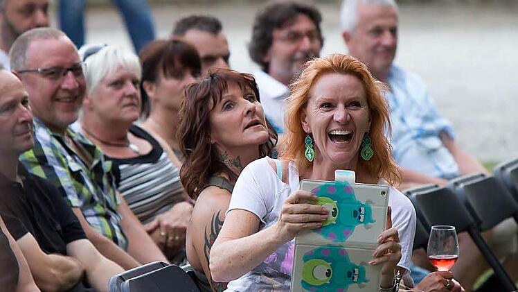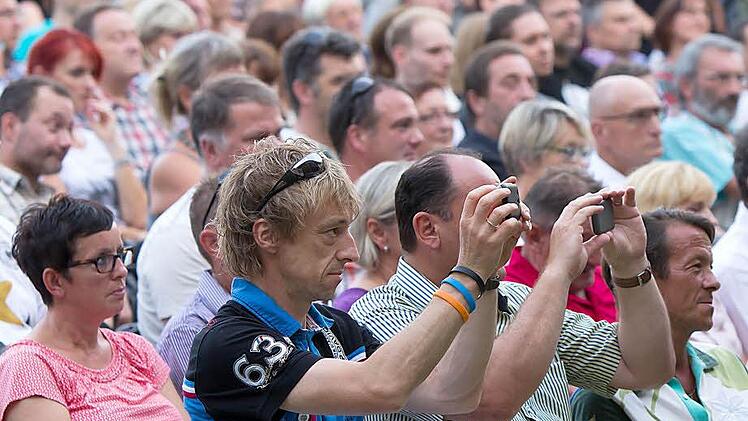 Später am Abend genießt er sichtlich die Begeisterung, mit der das Publikum im Tambacher Schlosshof bei einem seiner Hits zum lautstarken Chor wird: "Zwickt's mi".