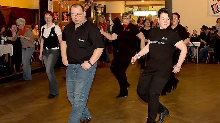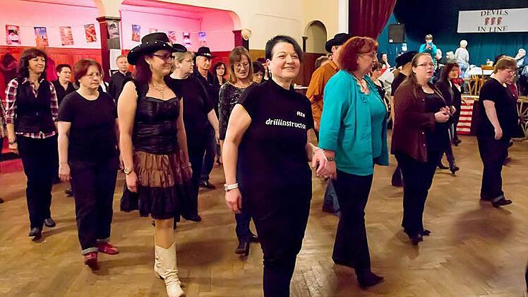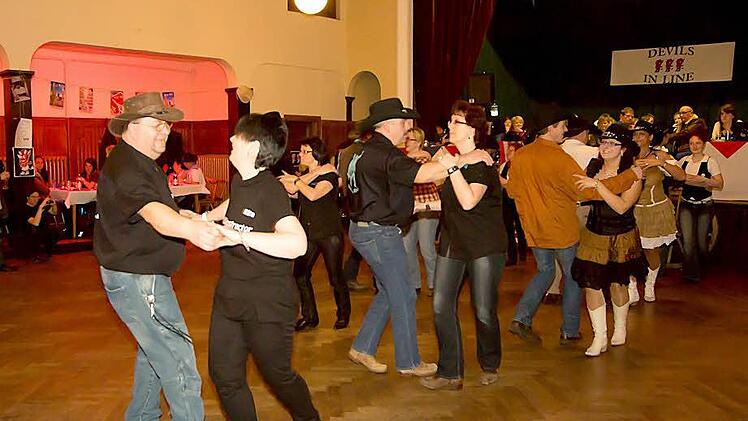 Der Parkettboden bebte unter den Cowboy-Stiefeln, Stars und Stripes hingen an den Wänden und Cowboy-Hut tragende Menschen tanzten im Goldenen Eichhorn. Was war da los? Die Tanzgruppe Devils in Line hatte zu ihrer ersten Line-Dance-Party geladen und viele Gruppen waren dem Ruf gefolgt. Normalerweise treffen sich die Devils im Gasthaus Hofmann in Mittelwasungen, aber der dortige Saal war zu klein.
