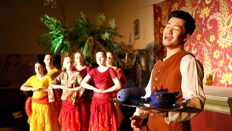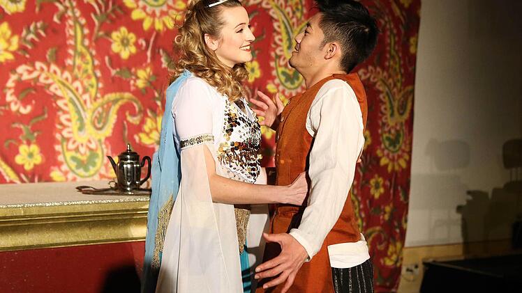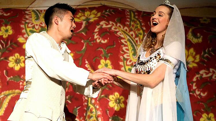 Bestens besetzt sind die beiden solistischen Hauptrollen. In der Titelpartie der arabischen Prinzessin gefällt Julia Klein mit schlankem, präzis geführtem Sopran und lebendigem Spiel. Und als junger Fischverkäufer Jamil zieht Hitoshi Tamada das Publikum mit der zarten Lyrik seines Tenors und seiner intensiven Darstellung in Bann.