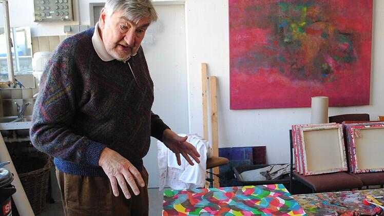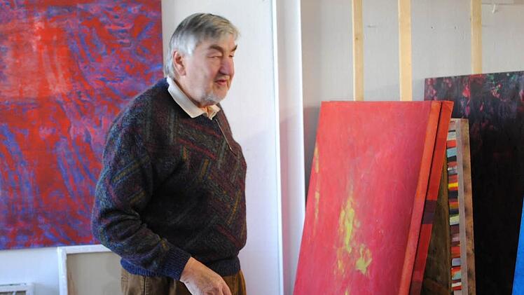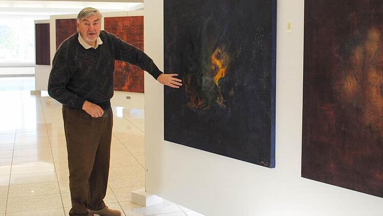 Der Coburger Keramiker Franz Denk malt seit Jahren in meditativer Erkundung des eigenen Inneren, das er für das Unendliche öffnen will. Jetzt stellt er seine großformatigen Bilder in der ehemaligen Goebel-Kantine in Rödental aus.