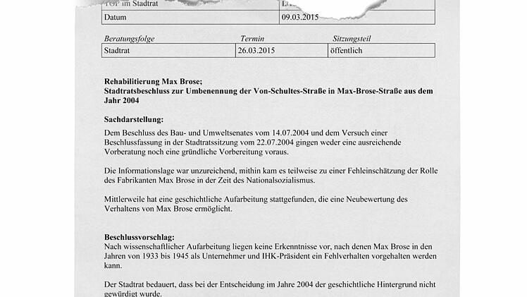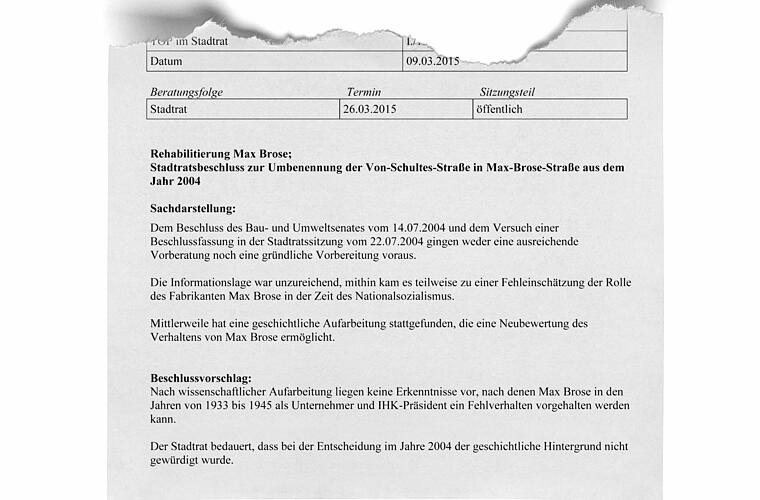 Der eigentliche Beschluss ist gerade mal fünf Zeilen lang, die zentrale Formulierung lautet "der Stadtrat bedauert". Für Streit sorgte aber in der Sitzung eher das, was in der Beschlussvorlage unter "Sachdarstellung" zusammengefasst ist: Als der Stadtrat sich im Juli 2004 mit der Frage befassen sollte, ob die Von-Schultes- in Max-Brose- oder in Brose-Straße umbenannt werden sollte, sei das nicht ausreichend vorbereitet gewesen. Gegen diese Aussagen wandten sich Wolf-Rüdiger Benzel (Grüne) und Monika Ufken (SPD). Beide waren in jener Sitzung dabei, als es galt, einen an sich rechtsgültigen Beschluss des Bau- und Umweltsenats aufzuheben. Der hatte "Brose-Straße" beschlossen, und es war einigen im Stadtrat klar, dass dies nicht den Gefallen des damaligen geschäftsführenden Brose-Gesellschafters Michael Stoschek finden würde.