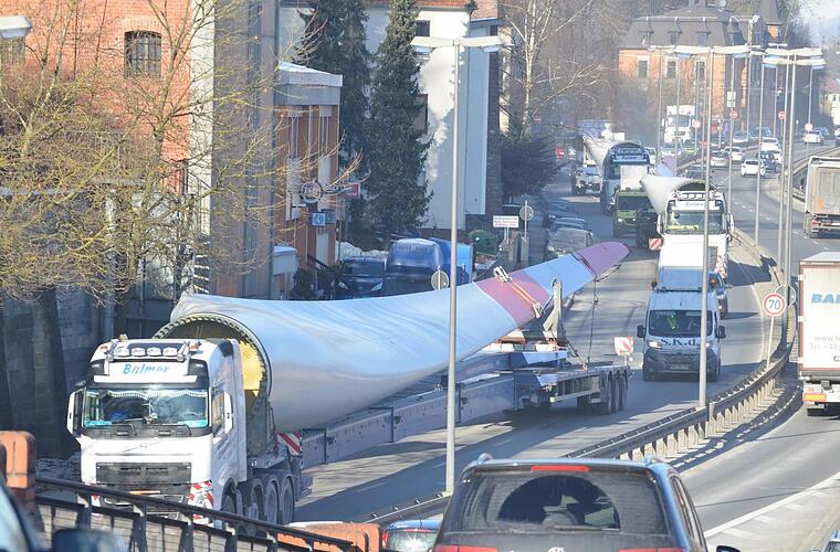 Sie gehören zu Windkraftanlagen vom Typ Nordex N 117, sie sind 58 Meter lang, runde zehn Tonnen schwer und sie müssen durch Coburg. Gestern beschäftigte der Transport von drei Rotorblättern für die Windenergieanlagen bei Welsberg die Coburger Polizei - und die Verkehrsteilnehmer im Weichengereuth.