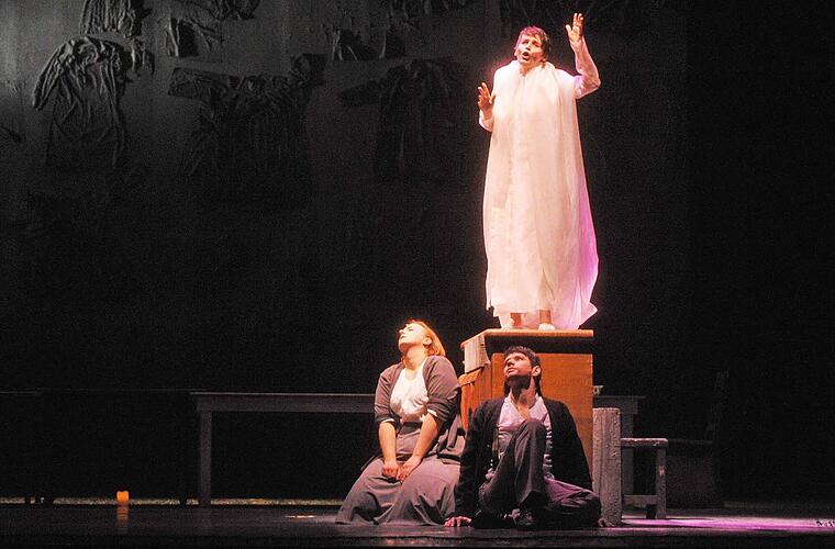 Das Coburger Landestheater aber hat uns unmittelbar vor Ostern einen Dienst getan, der uns in höchster Schönheit, ja in zum Schaudern schönen Genuss durch das Tal der Trauer auf einen Gipfel freudvoller Lebensintensität führt, zu Momenten des Einsseins mit der Welt für diejenigen, die das zulassen.