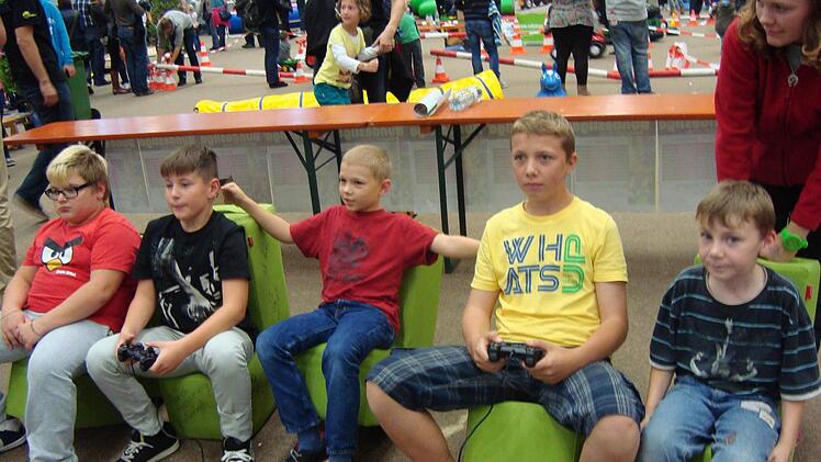 Fröhliches Schreien und Lachen klingt durch die HUK-Coburg-Arena. Round Table hat wieder zum Kinderfest gerufen hat und alle sind gekommen. Denn das Kinderfest hat inzwischen einen guten Namen im Coburger Veranstaltungskalender. Die Kinder können sich an vielen Stationen so richtig austoben oder auch ganz in Ruhe etwas tun. An einigen Ständen wird Aufklärungsarbeit geleistet. So zum Beispiel beim Aktionsstand von "HaLt!" (Hart am Limit). Dort geht es um Alkoholmissbrauch. "Da fährt man mit einer besonderen Brille durch einen Parcours und denkt, man ist betrunken", so die Erklärung von Fritz (9 Jahre alt).