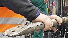 Auf den ersten Blick ist dort von filigraner Arbeit mit haardünnen Drähten nicht mehr viel zu sehen. Bei leichtem Nieselregen bohren die Mitarbeiter der Berliner Firma GKB mit dem Presslufthammer ein Loch. Danach hebt ein kleiner Bagger das Erdreich aus. Das Berliner Unternehmen arbeitet als Generalunternehmer mit einer Sonneberger Firma zusammen an dem Projekt.