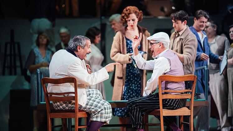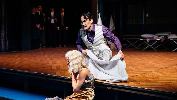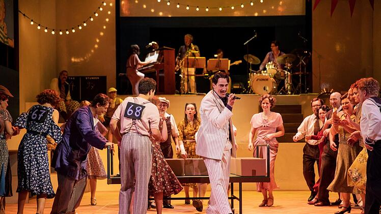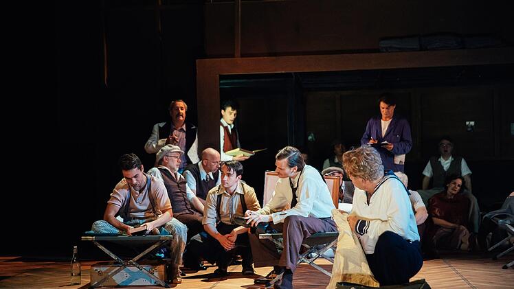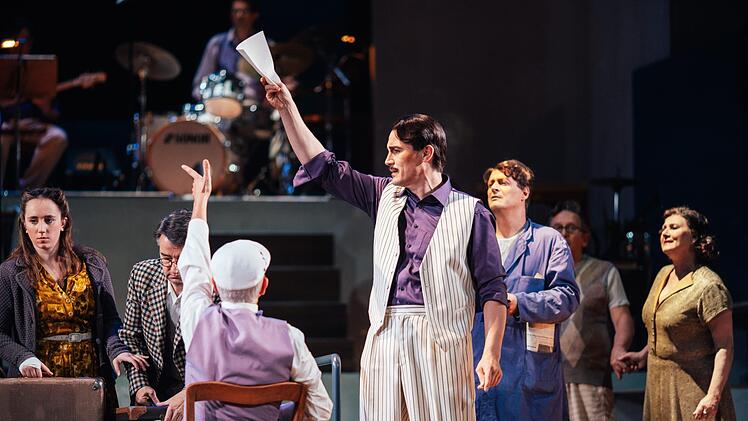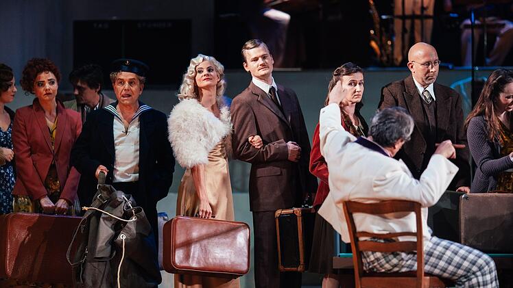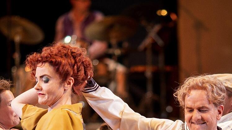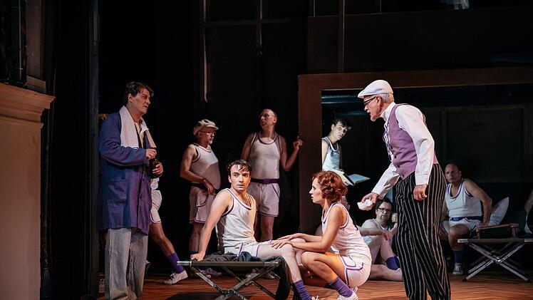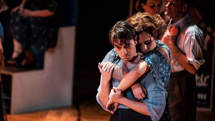 Die Aussicht auf 1500 Dollar Preisgeld lockt zahlreiche Hungernde in den Tanzwettbewerb. Immerhin gibt es auch regelmäßige Mahlzeiten. Es sind auf der Coburger Bühne Alexandra Weis als schon weitgehend hoffnungslose und somit böse gewordene Gloria und Thomas Kaschel als der gutmütige Robert, Eva Marianne Berger und Alexander Tröger als sich unablässig in Szene setzendes, auf Entdeckung hoffendes Schauspielerpaar, Niklaus Scheibli als lebenserfahrener ehemaliger Seemann Harry mit Kerstin Hänel als seiner zähen Partnerin Mary und Solvejg Schomers als schwangere Ruby mit Valentin Kleinschmidt als ihrem Mann James, in denen wir in kleinen, dichten Dialogen und in den Szenen hinter der Bühne die unterschiedlichen Schicksale erfahren. Einige bringen gesangliche Sondereinlagen. Das Coburger Schauspielensemble ist wahrlich zu vielem fähig.