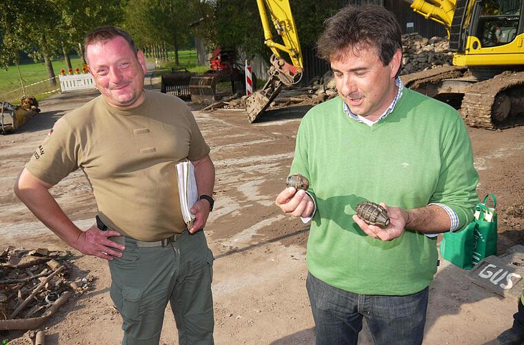 Granaten, die auf die Nerven gingen Und nicht zu vergessen bei dieser Aufzählung: die Phosphor-Nebeltöpfe. Diese Granaten aus amerikanischer Hersteller, 20 Stück ander Zahl, raubten den Autofahrern auf der Bundesstraße 4 in den vergangenen Wochen die Nerven, weil sie mehrfach sie Auslöser für Vollsperrung waren. Brannte nämlich so eine Granate ab, qualmte es ganz gewaltig. Um Unfälle zu vermeiden - nicht wegen etwaiger Umwelt- oder Gesundheitsgefährdung, wie Rolf Rosenbauer ausdrücklich betonte -, durfte dann kein Auto mehr an der Eselsbrücke vorbei fahren.