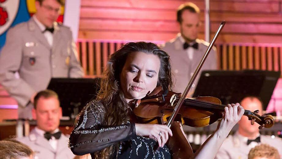"Schindlers Liste" Auch eine Gastsolistin hat das Musikkorps mit nach Rödental gebracht - die Geigerin Kim Leonores, die zwei effektvolle Programmnummern mit großem Nachdruck beisteuert - die melancholische Titelmelodie aus der Filmmusik zu "Schindlers Liste" aus der Feder von John Williams und ein Filmmelodien-Medley.