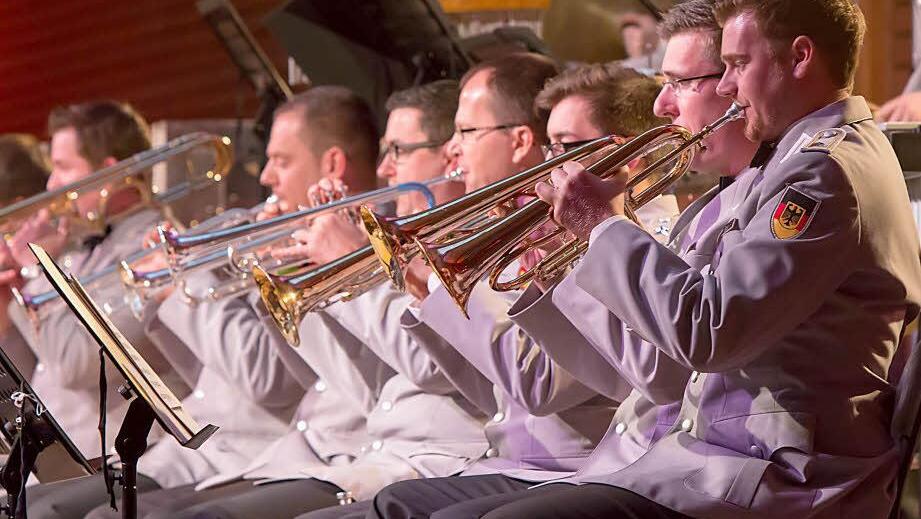 Das aus Erfurt angereiste Musikkorps beeindruckt die zahlreichen Zuhörer in der Franz-Goebel-Halle auch durch seine stilistische Vielseitigkeit.