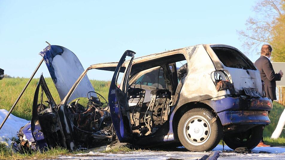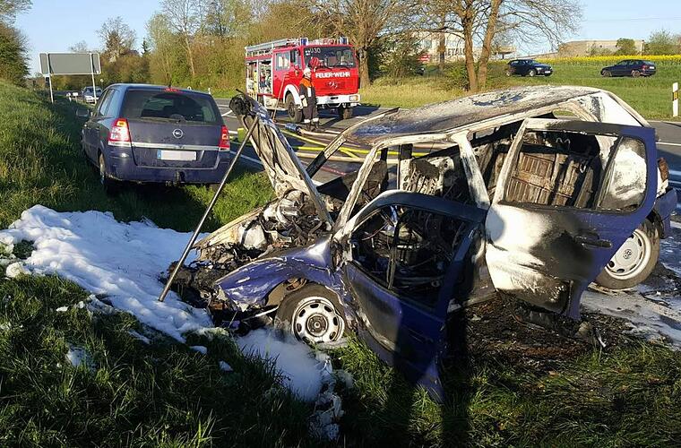 Nach einem Zusammenstoß von zwei Autos auf der B4 bei Kaltenbrunn, geriet einer der beiden Pkw in Brand. Die Fahrerin konnte aus dem Auto befreit werden.