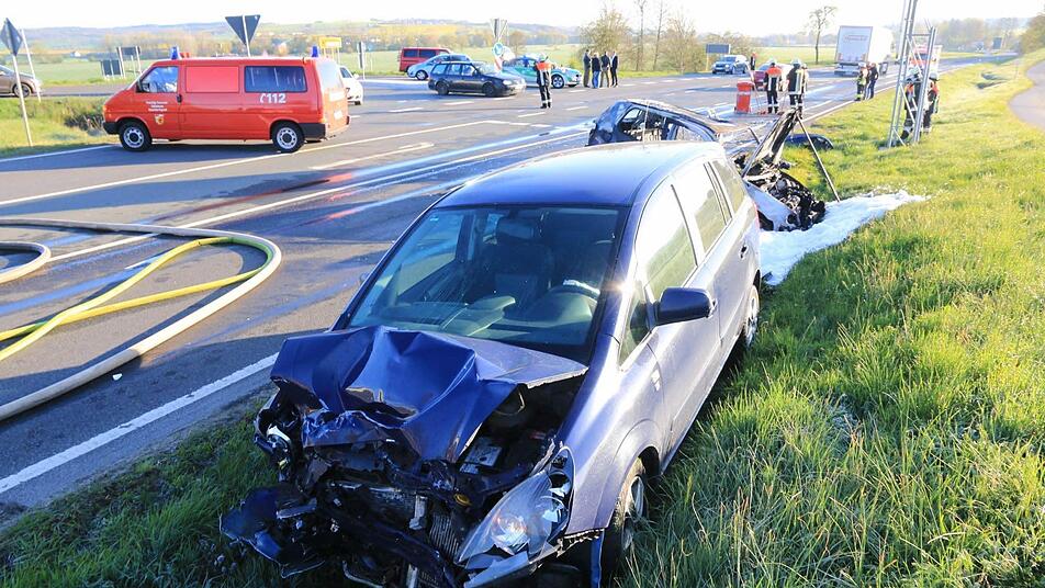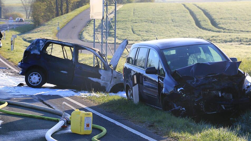 Der ausgebrannte VW und der stark deformierte Opel hatten nur noch Schrottwert. Der Gesamtschaden wird mit 15.000 Euro beziffert. Die Bundesstraße musste während der Unfallaufnahme auf Höhe Kaltenbrunn für rund drei Stunden komplett gesperrt werden. Der Verkehr wurde durch Kaltenbrunn umgeleitet, so dass es zur Berufsverkehrszeit zu keinen größeren Behinderungen kam. Die Freiwilligen Feuerwehren aus Untermerzbach und Kaltenbrunn waren mit 30 Einsatzkräften im Einsatz.