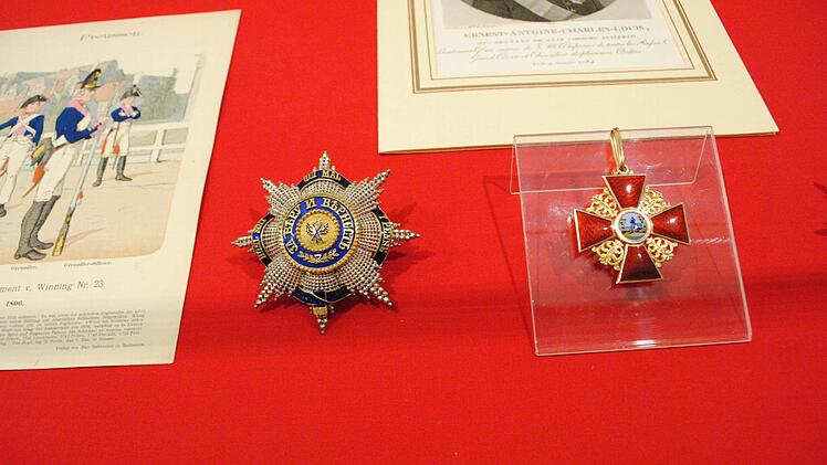 Unter dem "blendenden Quellenmaterial", über das Coburg verfügt, wurden für die Schau beispielsweise der imposante Offizierspallasch von Prinz Josias ausgewählt, eine schwere Hiebwaffe aus den Kunstsammlungen. Die Orden der Coburger Prinzen, die an vorderster Front zu kämpfen hatten, blinken und prangen. Eindrucksvolle historische Dokumente. Am besten aber lässt man sich diese für Coburg und die Region wichtige Geschichte erzählen: bei den Vorträgen und Führungen im Rahmen dieser Veranstaltungsserie.
