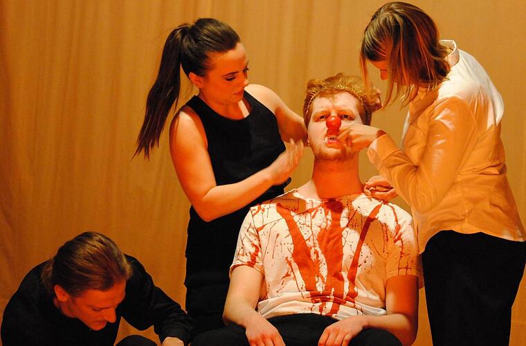 Eine Truppe namens "Caramellintravenoes" zeigt in der Rudolf-Steiner-Schule heftige Szenen von Volkmar Günther und Valentin Fruntke.