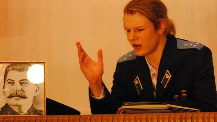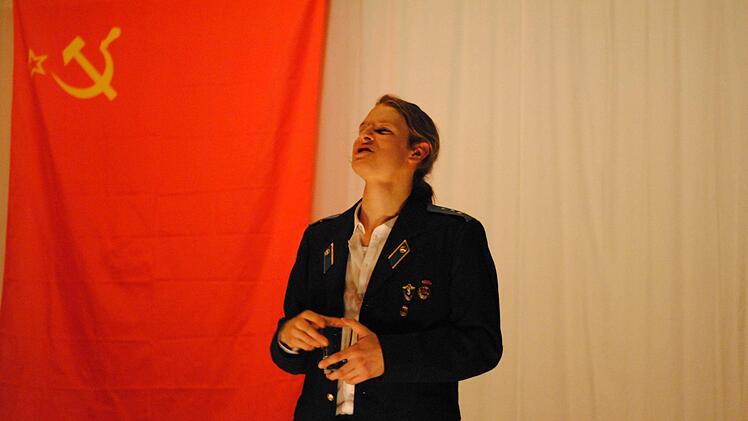 Also, was geschah? Das ist eben gar nicht so einfach zu sagen. Denn um ein Schauspiel handelt es sich selbstverständlich nicht. Viele diverse Szenen, mal eher komisch, durchaus auch sehr beklemmende, werden bei immer wieder geschlossenem Vorhang musikalisch von der heftig wallenden "Moldau" abgegrenzt. Ganz üble Nazireden, ohne weitere Einordnung, dann wieder sind wir bei einem brutalen Verhör samt Bestrafungsaktion vor stalinistischem Hintergrund. Gedichte wirken - auch bewusst zynisch ganz daneben. Zunehmend überlagern sich die Texte, die Bruchstücke, bis sich zum Schluss die Worte auflösen.