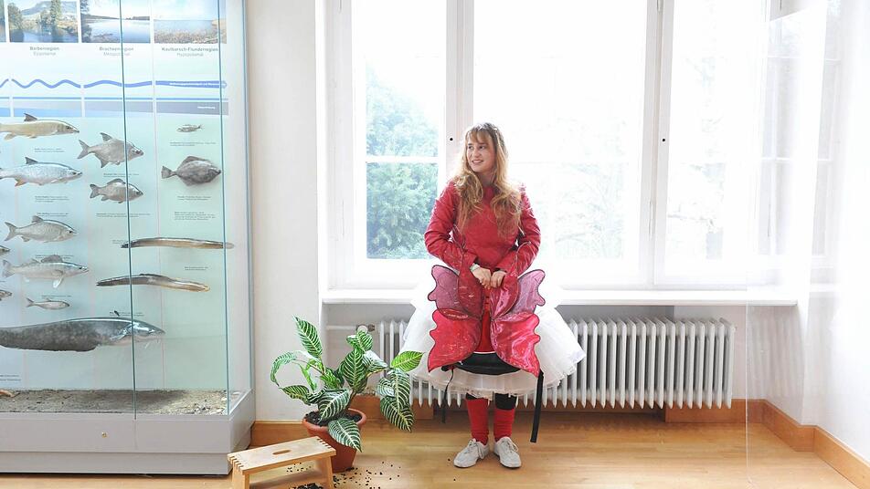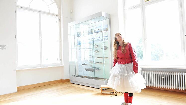 Landestheater Coburg Schlafen Fische? Eine manchmal heitere und manchmal traurige Geschichte von Jens Raschke, erzählt im Naturkundemuseum Coburg. Für Menschen ab 9 Jahre, Regie und Ausstattung: Birgit Eckenweber, Dramaturgie Carola von Gradulewski, Darstellerin: Anne Rieckhof
