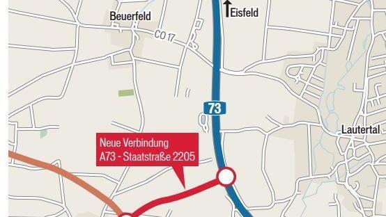 Das Staatliche Bauamt hat die Pläne für eine zusätzliche Anschlussstelle an der A73 samt Anbindung an die Staatsstraße 2205 bei Coburg vorgestellt.