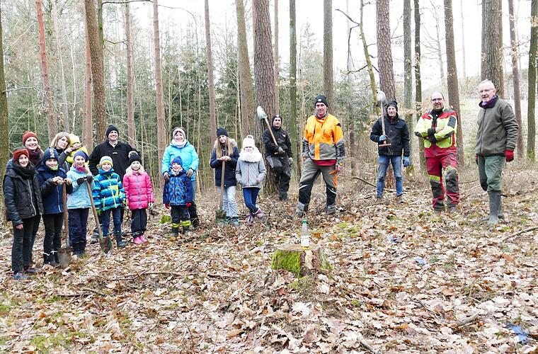Bei einer Pflanzaktion im Weitramsdorfer Kirchenwald packten auch Neundorfer und Hergramsdorfer gerne mit an.