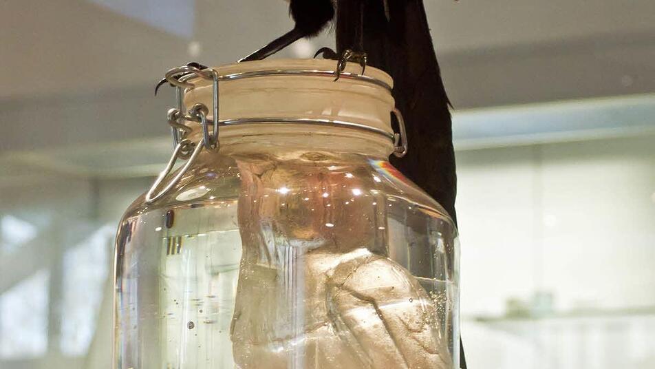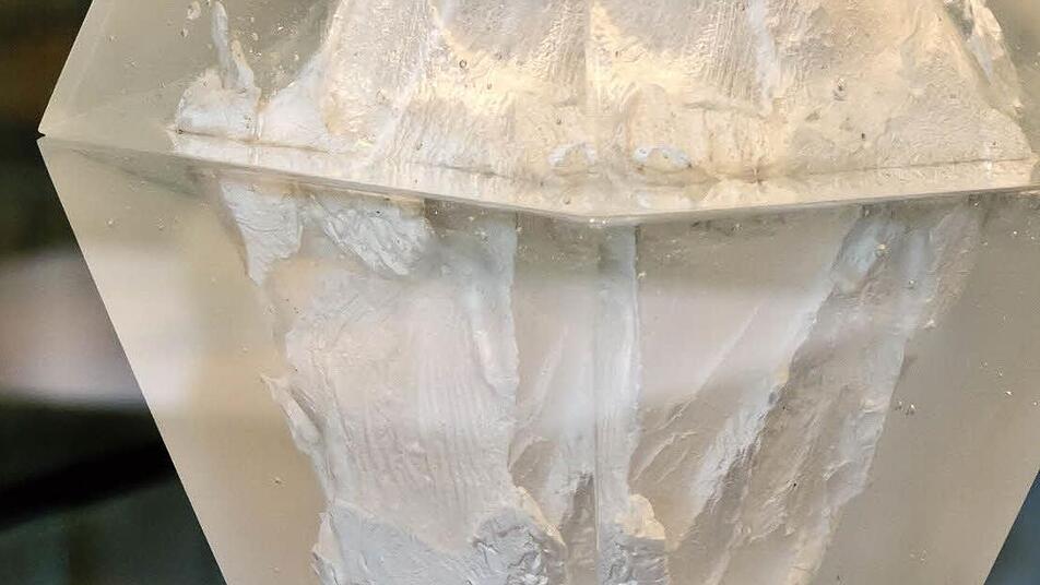 Ebenfalls neu in der Dauerausstellung: die Arbeit "Unique Frost" von Lene Tangen. Seit Jahren arbeitet die in Bornholm ausgebildete Glaskünstlerin aus Norwegen an dem Zyklus "Unique", mit dem sie das Wechselspiel von Zeit und Raum thematisiert. Ihre Arbeit fasziniert durch die Verbindung der glatten Außenseite und der bewegten Innenperspektive. "Unique Frost" entstand im Wachsausschmelzverfahren.
