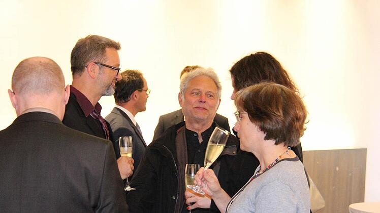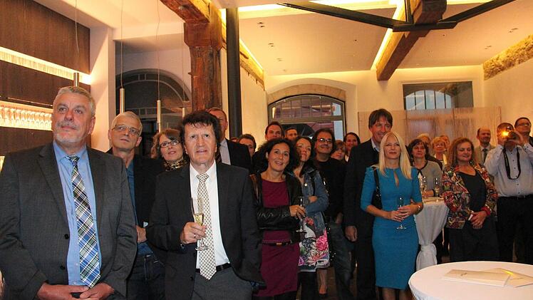 Für das stimmige Gesamtbild des Saales zeichnet Michael Heinrich verantwortlich, Professor an der Hochschule Coburg und Bühnenbildner. Zahlreiche Vertreter der Hochschule waren zur Eröffnung gekommen, aber auch Oberbürgermeister Norbert Tessmer, Landrat Michael Busch, Zweite Bürgermeisterin Birgit Weber,IHK-Präsident Friedrich Herdan und der Intendant des Coburger Landestheaters, Bodo Busse.