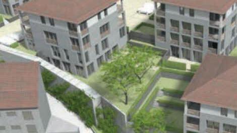 Die damaligen Studien, fünf an der Zahl, dienten denn auch als Grundlage für die aktuellen Planungen. Die Investoren entschieden sich für die Variante mit fünf drei- bis viergeschossige "Stadtvillen". Locker auf dem jetzt brachliegenden Areal verteilt, sollen sie insgesamt 38 Wohnungen aufnehmen. Hinzu kommen 52 Parkplätze, teilweise in Tiefgaragen.