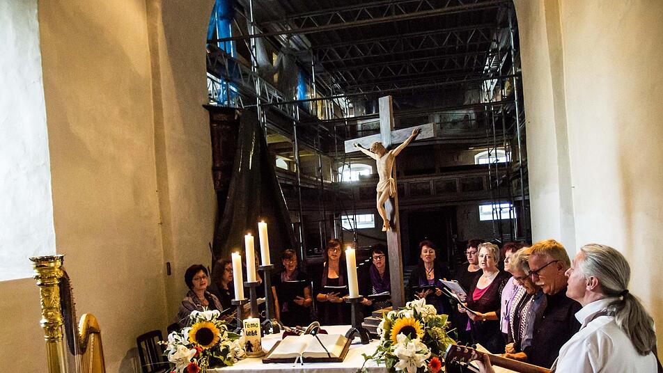 Wie die Kirchengemeinde Fechheim mit einem musikalischen Abendgottesdienst ein Zeichen setzt für die Rückkehr in die sanierungsbedürftige Michaelskirche.