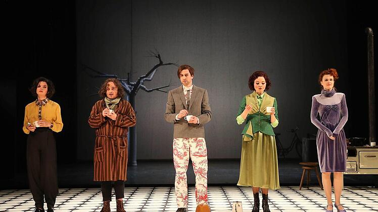 Dazu hat Ditteke Waidelich das exakt passende Bühnenbild entworfen, das mit sparsamsten Akzenten und einigen wenigen Versatzstücken zwischen Realismus und symbolischem Realismus auskommt. Ein Küchenherd mit Holzbefeuerung, ein drehbarer Holzhocker, ein abgestorbener Baum, der schließlich zusammenbricht wie von Zauberhand zerlegt - mehr braucht Waidelich nicht, um den passenden Rahmen für dieses Familien-Endspiel zu schaffen. Imke Paulick hat dazu die adäquaten Kostüme geschaffen - karikierend zugespitzt in der Charakterisierung.