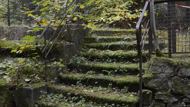 Es ist ein Haus mit Geschichte. Und Geschichten gäbe es viele zu erzählen aus der Zeit, als hier gelebt und gearbeitet wurde. Ob es eine Geschichte gibt, die in der Zukunft spielt, muss sich zeigen. Eigentümer und Gemeinde können sich aber auch gut vorstellen, die Geschichte "Pension Waldhaus" zu einem - wenn auch traurigen - Ende zu bringen. "Es kommt auch ein Abriss infrage und ein Neubau, schließlich ist es ja ein tolles Grundstück", sagt Elke Rothenbucher. Unter Denkmalschutz steht das Gebäude nicht. Tatsächlich gehört einiges mehr an Land dazu, als der Bereich, auf dem das eindrucksvolle Gebäude steht. Über 6000 Quadratmeter sind es, die sich auf den Hügel hinter dem Haus erstrecken. Teilweise ist das Gelände mit altem Baumbestand bewachsen.