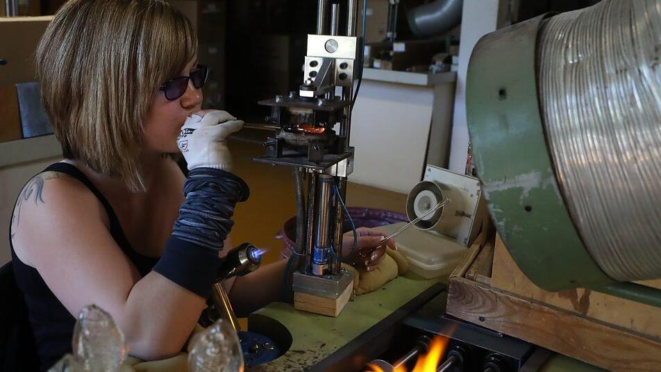 Die 22-Jährige hat eine dreijährige Ausbildung an der Berufsfachschule-Glas in Lauscha absolviert. "Die Glasbläser kommen mit einer guten Ausbildung von Lauscha", lobt ihr Chef Klaus Müller-Blech. Er ist heute Geschäftsleiter des Familienunternehmens, das seit Generationen Glasschmuck herstellt. Die Kollektion Manufaktur wird komplett in Handarbeit in Neustadt hergestellt. Das ist es, was Jessica Zitzmann tut.