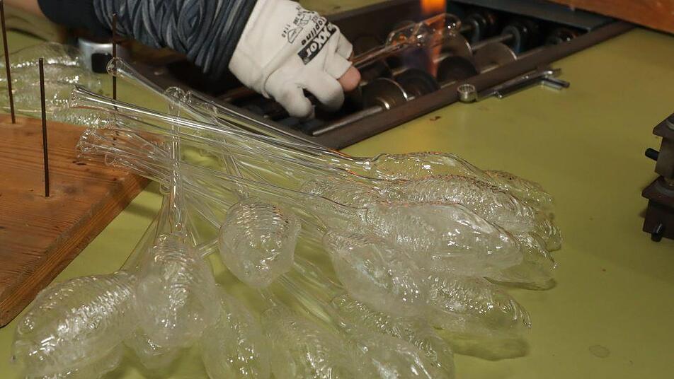 Die Herstellung erfolgt dabei im Grunde wie seit Jahrhunderten. Die Brenner sind leiser geworden, aber immer noch laut. Damit die Hitze erträglicher wird, saugt sie ein dickes Rohr über der Lampe ab. Ein Job für Leute, die es heiß mögen, bleibt die Glasbläserei trotzdem. Und eine Sonnebrille gehört zur Berufskleidung - was allerdings schon wieder ziemlich cool aussieht. Ein Job für Zappelphilippe ist die Glasbläserei nicht. Es gehört schon eine gewisse Ruhe dazu, acht Stunden vor einer Flamme zu sitzen und sorgfältig diese kleinen filigranen Teile aus einem so empfindlichen Material herzustellen.