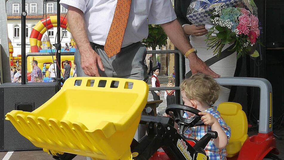 Ministerin in Bayern passte aber sowieso als Rednerin wie die Faust aufs Auge beim Puppenfestival-Auftakt. Sie hatte nämlich ihren zweijährigen Sohn Emanuel mitgebracht, der beim Anblick von Puppenfee, Spielzeug und spätestens dem großen Traktor als Geschenk von Frank Rebhan für seine Mutter mächtig große Augen machte.