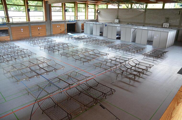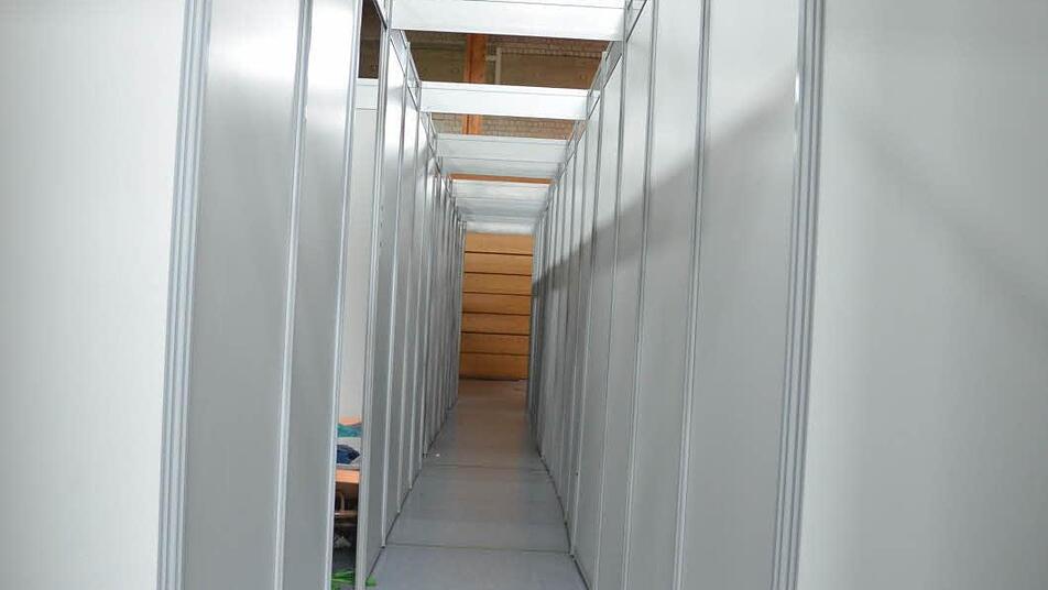 In der Halle sind mit Trennwänden Schlafbereiche für jeweils sechs bis acht Personen eingerichtet. Bis zu 200 könnten nach Notfallplan aufgenommen werden. Wann es mehr werden? Niemand weiß es. Aber allen Stellen ist klar, dass die Zahl der Flüchtlinge insgesamt weiter steigen wird, die der Landkreis aufnehmen muss. "Wir versuchen, die Leute so schnell wie möglich aus der Halle zu bringen und dezentral unterzubringen", betont Michael Busch. Dafür werden weitere Quartiere gesucht. Investoren haben Interesse bekundet, verschiedene Gebäude herzurichten. Doch es muss immer geklärt werden, ob der Aufwand, der nötig ist, um allen Bestimmungen gerecht zu werden, durch spätere Einnahmen wieder gedeckt werden kann.