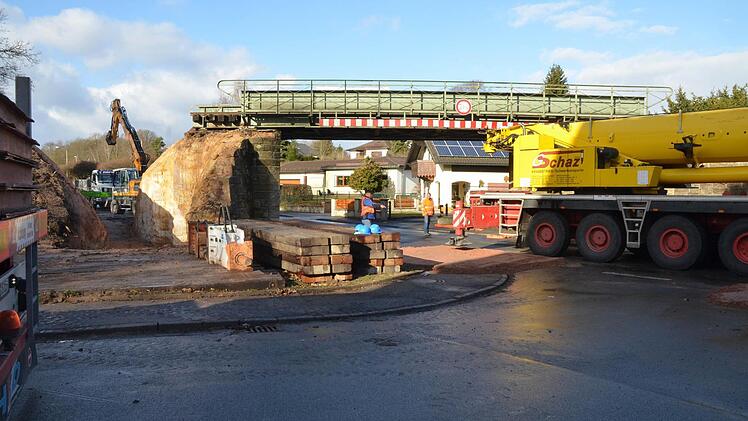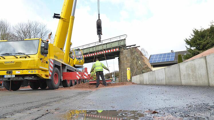 In der Coburger Straße blieben die gemauerten Widerlager der Brücke zurück. Sie können nun auch abgerissen werden. Engstelle und Hindernis für Lkw (die Brücke ließ nur 3,9 Meter Raum) sind Geschichte.