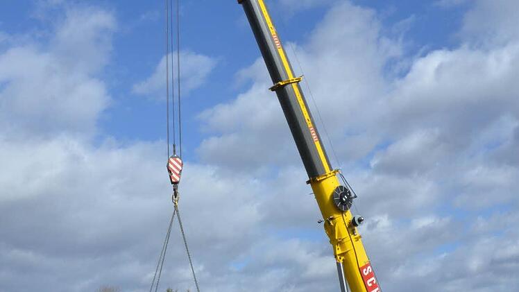Allein der riesige Autokran benötigte schon rund eine Stunde, ehe er einsatzfähig war. Sandpolster waren schon in genau abgemessenen Positionen aufgebracht worden. Ein Tieflater brachte dazu noch große Platten, die per Kran auf die Sandbänke gelegt werden mussten, ehe die Stützen des Monsters ausgefahren und dort aufgesetzt werden konnten. So wurde verhindert, dass der Asphalt durch die Stützen beschädigt wird.