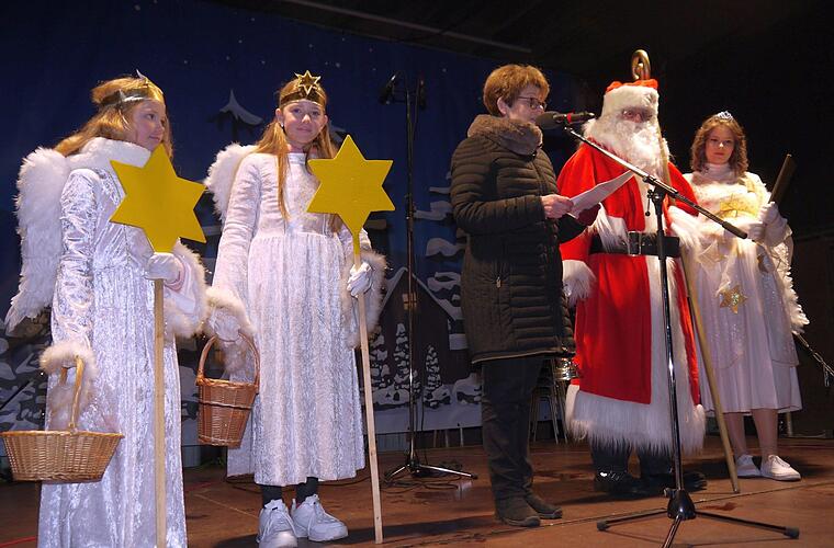 Am Sonntag auf der Bühne: Weihnachtsrevue "Weihnachten im Winterwunderland" (14.30 bis 15.45 Uhr); Kristin Rempt singt Weihnachtslieder (16 bis 16.45 und 17.15 bis 18 Uhr); der Nikolaus und das Christkind kommen zur Bescherung (16.45 Uhr); Nikolauspäckchenausgabe (17 bis 17.15 Uhr); Nikolausmarktausklang (18 bis 19 Uhr).