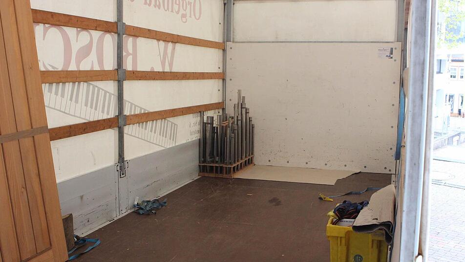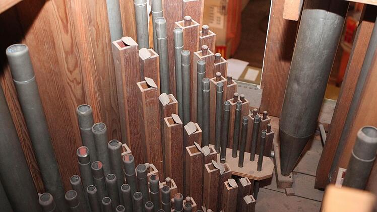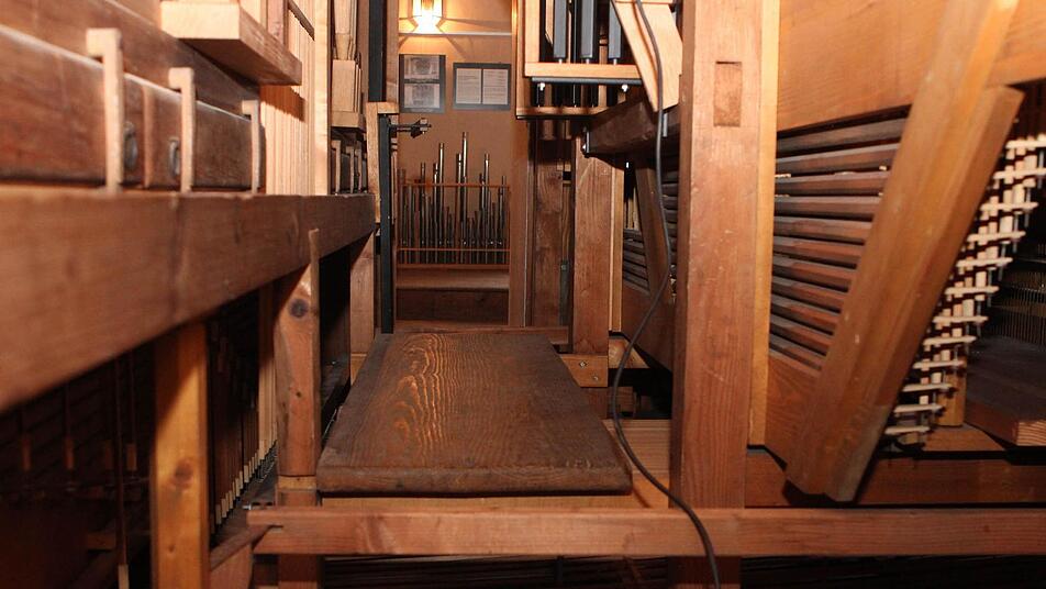 Bis Juli bleibt das riesige Gehäuse der Orgel leer, denn solange sollen die Arbeiten dauern. Aber auf musikalische Umrahmung ihrer Gottesdienste muss die evangelische Gemeinde in Neustadt nicht verzichten, denn es gibt Ersatz. Kantor Heunisch, der sonst auf der großen Orgel mit 3000 Pfeifen und 42 Registern spielt, zeigt auf eine Truhe unter der Kanzel: "Wir nutzen in dieser Zeit die Truhenorgel." Die ist ungefähr zehnmal kleiner als die große Schwester, die gerade demontiert wird.