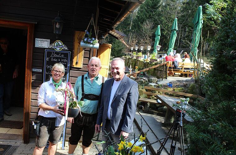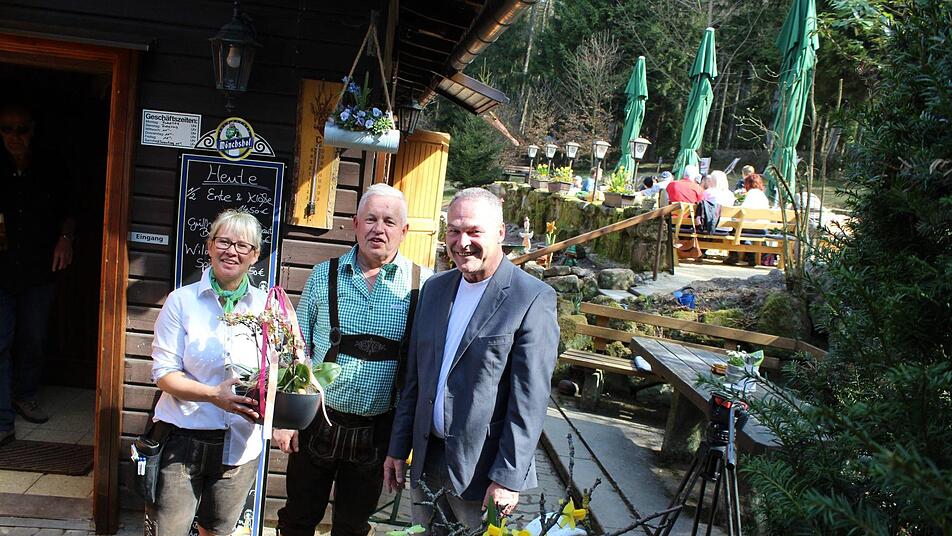 Neustadts Oberbürgermeister Frank Rebhan (SPD) zeigte sich auch in seiner Funktion als Vorsitzender des Verschönerungsvereins besonders glücklich über die Wiedereröffnung der Schutzhütte unter der Führung des gastronomieerfahrenen Stöwer-Teams. "Ich freue mich richtig und wünsche der Familie Stöwer viel Freude und viele zufriedene Gäste. Ich bin sehr glücklich, dass sich jemand mit solch einem gastronomischen Ruf und Können dazu entschlossen hat, hier auf der Schutzhütte zu sein", dankte OB Rebhan. Und Familie Stöwer ließ wissen, sie hätten sich damit endlich ihren Traum von einer Hütte auf dem Berg erfüllt.