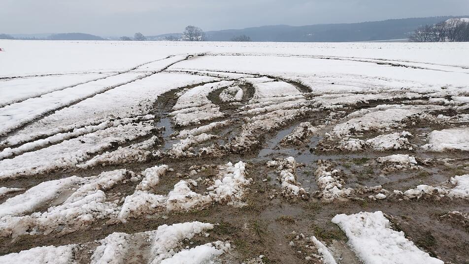 In dem Zeitraum von Samstag (08.01.2022) 16.00 Uhr bis Montag (10.01.2022) 12.00 Uhr fuhren vermutlich mehrere Fahrzeuge über den östlichen Teil der Start- und Landepiste des Flugplatzes Coburg-Steinrücken in Niederfüllbach.