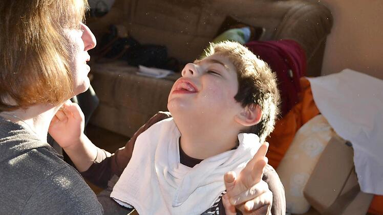 Der Sommer ist keine gute Jahreszeit für Familie Jahn. An Urlaub ist gar nicht zu denken. "Wir sind schon froh, wenn wir im Juli und August daheim sind und nicht im Krankenhaus", sagt Mutter Daniela. Auf ihrem Schoß lehnt ihr achtjähriger Sohn Nikolas. Sie hält ihn fest, damit er nicht umkippt.
