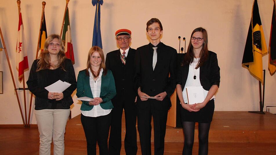 Alljährlich dürfen vier Abiturienten der vier Coburger Gymnasien Stipendien entgegennehmen. Ausgewählt wurden Selina Melchior (Albertinum), Anika Reinmüller (Alexandrinum), Julian Karpf (Casimirianum) und Doris Kautler (Ernestinum). Alle vier sind nicht nur außerordentlich gute, vielseitige und engagierte Schüler. Sie setzen sich in der Schule und in der Freizeit auch für andere ein.