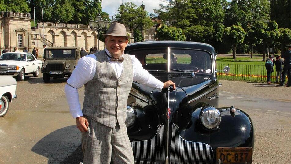 Nun steht der Buick auf dem Coburger Schlossplatz und - nein, er glänzt nicht. Der Lack hat einige etwas matte Stellen, der Stoffhimmel im Innern kleine Risse. "Er ist 75, er darf das auch zeigen." Ulrich Albanus in Knickerbockern und karierter Weste passt modisch zu der großen Limousine, die in langsamer Fahrt sanft ums Schlossplatz-Rondell schwingt. "Schlaglöcher merken Sie da nicht!", sagt Albanus.